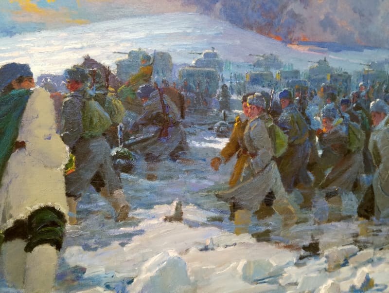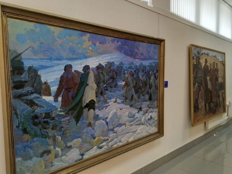 Многие люди даже не осознают, насколько много у нас и сейчас, и было в самые тяжелые годы талантливых художников. Тема всех 24-х картин – война, ее тяготы и, конечно же, Победа. А художники, непосредственные участники тех тяжелых событий, перенесли на холсты собственные воспоминания. Все сюжеты разные, с разными героями — и тем они хороши. Будь то морозный день 41-го, или первый праздник Победы, в сердце зрителя найдется отклик!