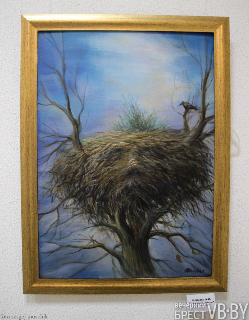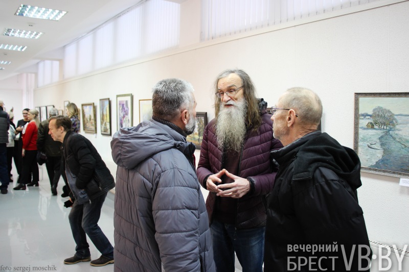 Левон Волосюк представил портрет поэта Алеся Рязанова, уроженца Березовского района, ушедшего от нас в минувшем году. Художник с ним неоднократно встречался в Бресте и на малой родине, по сей день увлекается его философско-духовной поэзией. Нельзя было не заметить работу Анастасии Фетисовой «Нясвіж». Стиль ни с кем не перепутаешь. Издалека подумалось, что это «Берестейский замок», но увы… Традиционно креативил с сельскими пейзажами Анатолий Желудко. Наталья Черноголова со свойственной «скромностью» и эпатажем представила работу «Я могучее Пикассо» и другие. Владислав Куфко продолжил свои «Путешествия». В этот раз – седьмым и восьмым по счету. Антонина Гурщенкова не изменяет гобеленам… В общем, на выставке не будет скучно.