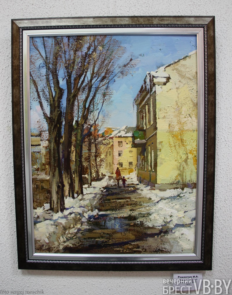 Как всегда, притягивают внимание картины Игоря Романчука. В этот раз наполненный светом «Летний полдень» и дышащее оттепелью «Начало весны». На первой представлен современный центр улицы Советской Бреста, на второй – типичный пейзаж старого города. Похоже, что у названной благодатной темы находятся последователи, однако немногим удается столько точно и талантливо передавать дух и детали.