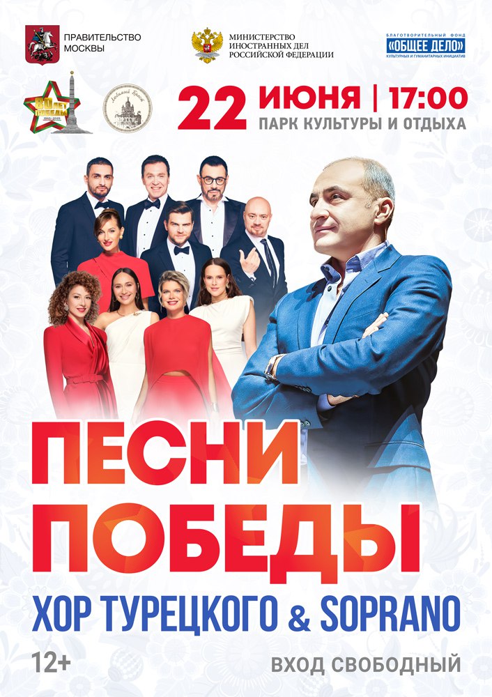 Легендарный «Хор Турецкого» представит свою программу «Песни Победы». Вас ждут искренние и трогательные композиции о мире, подвиге и любви – от «Бухенвальдского набата» до любимых «Катюши» и «Смуглянки». Специальным подарком станет исполнение песен на белорусском языке!