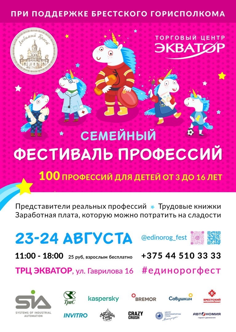 Генеральный партнер фестиваля профессий «Единорог», компания Системы промышленной автоматизации SIA.by представит на фестивале профессию робототехник. Ребят ждет необычная игра-угадайка от робота-дегустатора и мастер-классы по робототехнике.