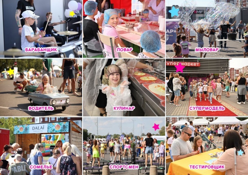 Это более 100 профессий для детей! В простом и интерактивном формате дети смогут попробовать себя в роли разных специалистов, получить первую «трудовую книжку» и настоящую «зарплату», которую можно будет потратить на сладости прямо на фестивале в магазинах от официальных партнеров — компании BREMOR, CRAZY CRUSH, «Савушкин продукт» и «Канцелярские штучки».