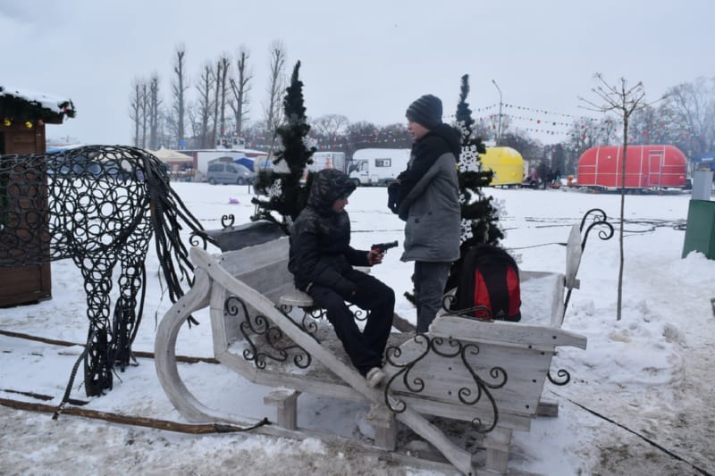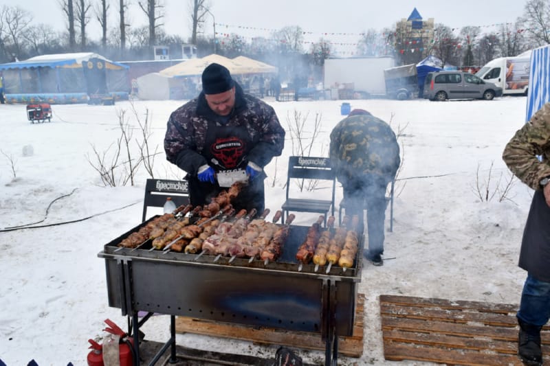 На набережной Бреста во всю гуляет праздник «Брэсцкiя забавы». В 11.00, как и обещалось, над Мухавцем потянулись вкусные запахи – в ассортименте многочисленных торговых палаток предлагали драники, блинчики, чебуреки, всевозможную выпечку и, конечно, шашлыки. «Забавы» изобилуют фотозонами: в кадр можно взять елочку с золотым бантом, белого оленя… Чем-то необычным оказались лошадь и лев из металлических колец.
