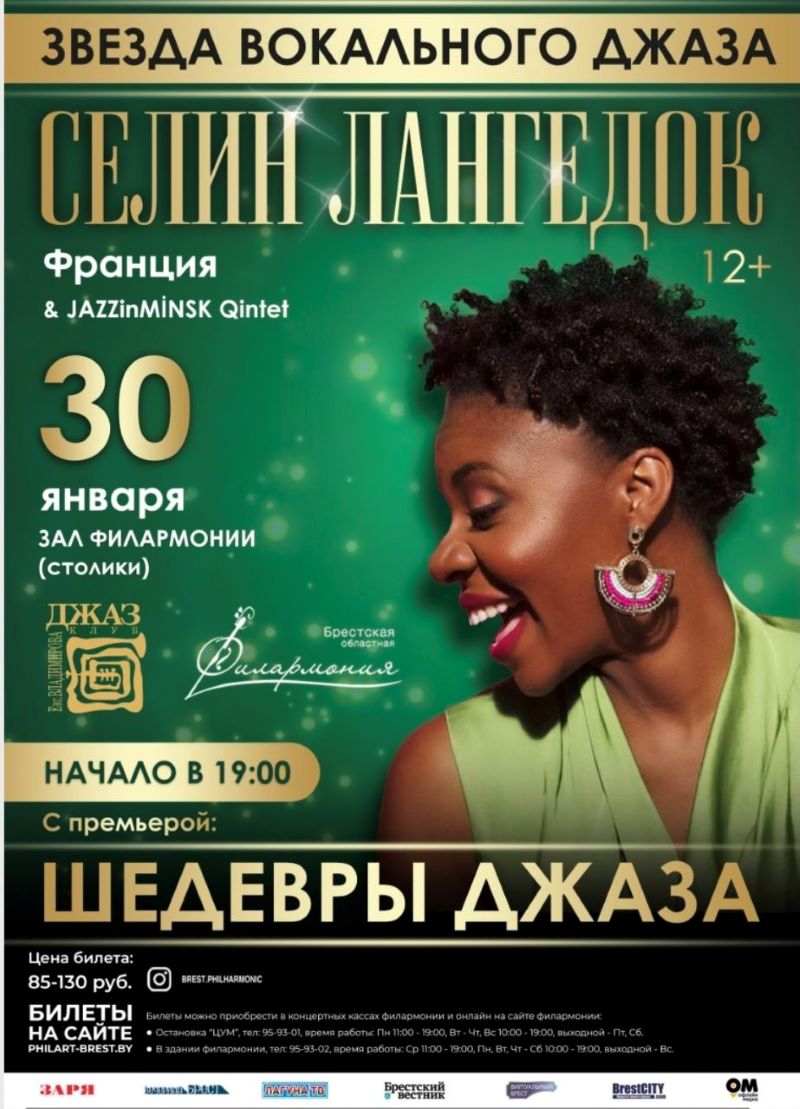 Родом с Гваделупы в Карибском море, Селин говорит и поет на четырех языках – французском, креольском, пикардийском (север Франции) и английском. Это удивительный и незабываемый коктейль культур, многоголосие исполнительского мастерства, умение обаять зрителя. В Бресте почти год не было исполнителей с родным французским. Но и джаз отдельная ценность. Недаром маэстро Евгений Владимиров называет Брест второй джазовой столицей страны. Недавно его стараниями в Бресте гостил Уолдо Уэзерс, а раньше – и Мадди Орсине, и Ванесса Рубин, и другие вокалисты и инструменталисты мирового уровня.