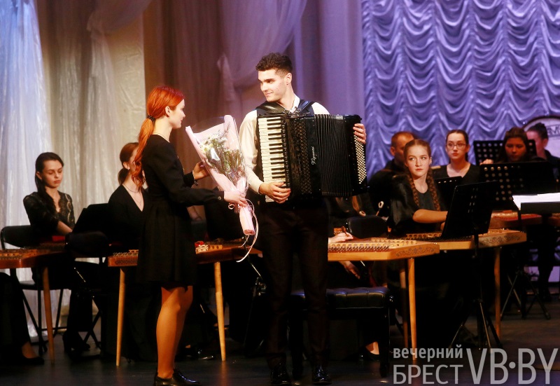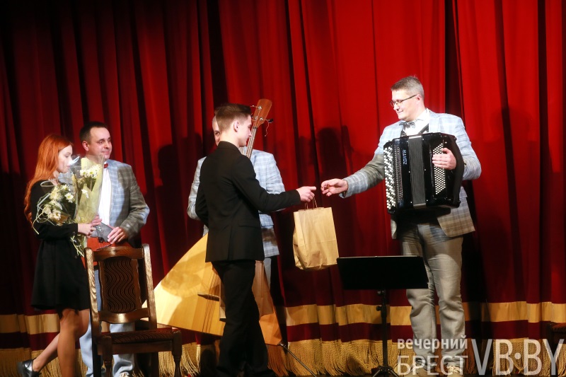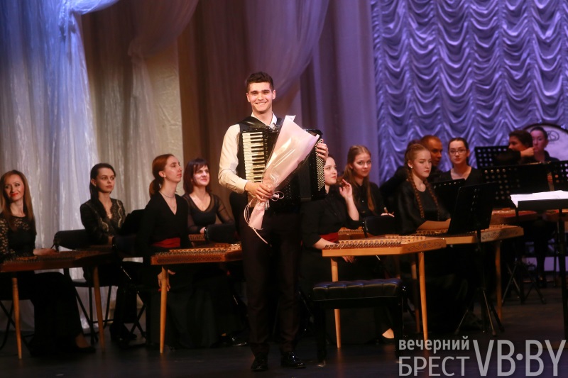 В начале публику разогревал брестский заслуженный коллектив РБ, инструментальный ансамбль «Рондо». Особенно хорошо публика приняла плясовые вариации композитора Б. Трояновского, прихлопывала в такт и чуть не пустилась в пляс. Настроение зала выровнял оркестр народных инструментов Брестского музыкального колледжа, руководимый Алексеем Захарчуком. Под оркестровые переливы солировали юная цимбалистка Вероника Бригадина, сопрано Александра Моминова, начинающий ас аккордеона Илья Нестерович.
