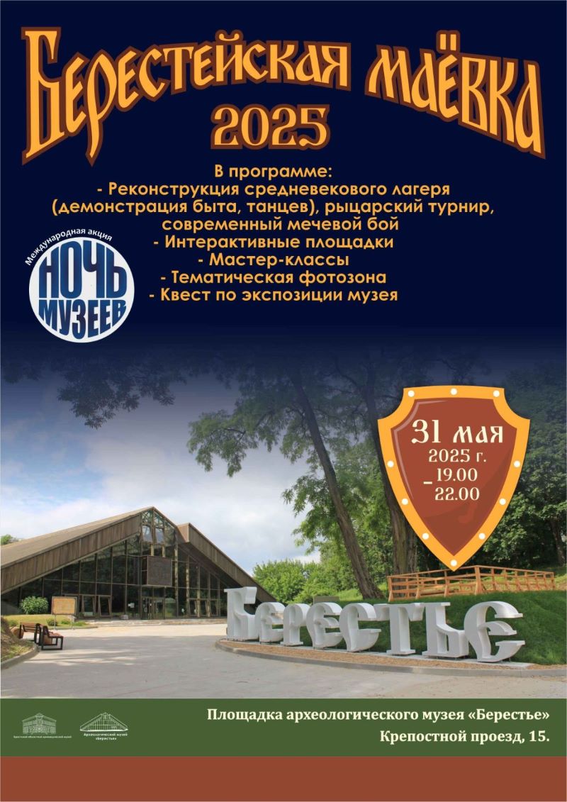 31 мая в 19.00 в филиале Брестского областного краеведческого музея «Археологический музей «Берестье» в рамках международной акции «Ночь музеев» состоится традиционное мероприятие «Берестейская маёвка 2025»