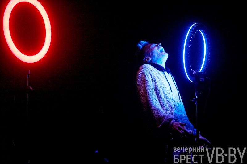 Во многих постановках для иллюстрации текста Иванова на сцене выстраивали настоящую стенку – герои перебранивались через нее как, наверное, это происходило бы в жизни. Но режиссер Евгений Балтин пошел по тонкому пути. Его зритель должен был считать посыл – мать и сын существуют в непересекающихся мирах. В сценографии Балтина нет ничего – нет стен, нет кресел, нет предметов. Это тот случай, когда горе так огромно, что не за что зацепиться. «Интерьер» играют светодиодные светильники – на черной сцене яркие круги. Рассказывая залу о своих переживаниях – таких глубоких и горьких, что без крепких слов нельзя, – мать и сын не смотрят друг другу в глаза. Они живут параллельно. Параллельно!
