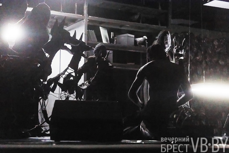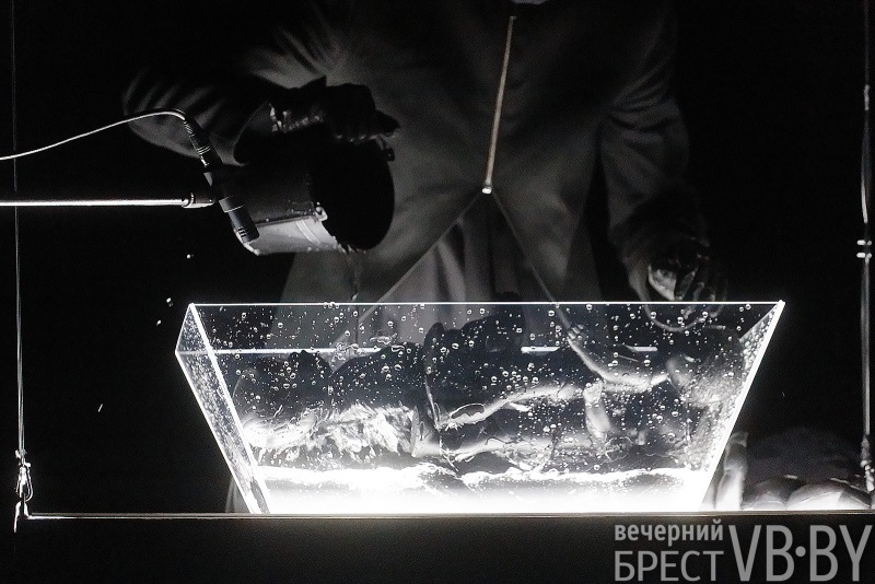 – Это три спектакля по белорусским народным песням, – рассказал Евгений Корняг журналистам, – сегодня мы показываем вторую часть – «рождение ребенка». Третья будет – «смерть», но она не будет печальна. Белорусские песни, которые звучат в наших спектаклях, – это то, из чего, мне кажется, состоит Беларусь. По сравнению с «Шлюбом з ветрам» сегодняшний спектакль более сложный по партитуре, актеры больше научились петь. Здесь мы с Катей Аверковой (музыкальным редактором – Т.Ш.) делаем акцент на голосе, на пении. Мысль может потерять глубину, когда спектакль сделан без слов, без диалогов, только с помощью белорусской народной песни. Поэтому мы рекомендуем прочесть текст – в программках есть тексты, – иначе будет сложно сфокусироваться на действии. Спектакль поставлен так, чтобы его смотреть два-три раза и выучить текст. Он во многом построен на моих впечатлениях из детства, когда я проводил время в деревне. Кто знает обряды, которые мы показываем, узнает их, кто не знает – придумает свое.