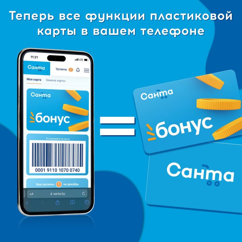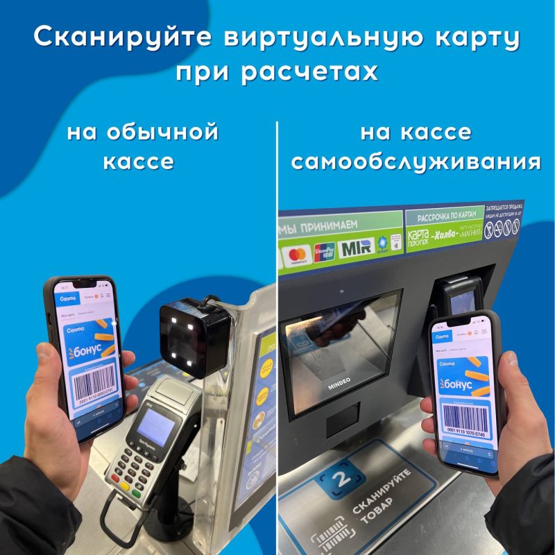 Теперь не обязательно искать пластиковую карточку на кассе, «пластик» больше не останется «в другой куртке». Для удобства «Санта Бонус» может работать и в вашем телефоне. Как это сделать? Заходим в личный кабинет в раздел «Моя карта», сканируем на кассе ее штрих-код. Дополнительно советуем сделать скриншот – на случай, если в момент покупки пропадет интернет. Одно движение – и бонусы зачислены на вашу карту.