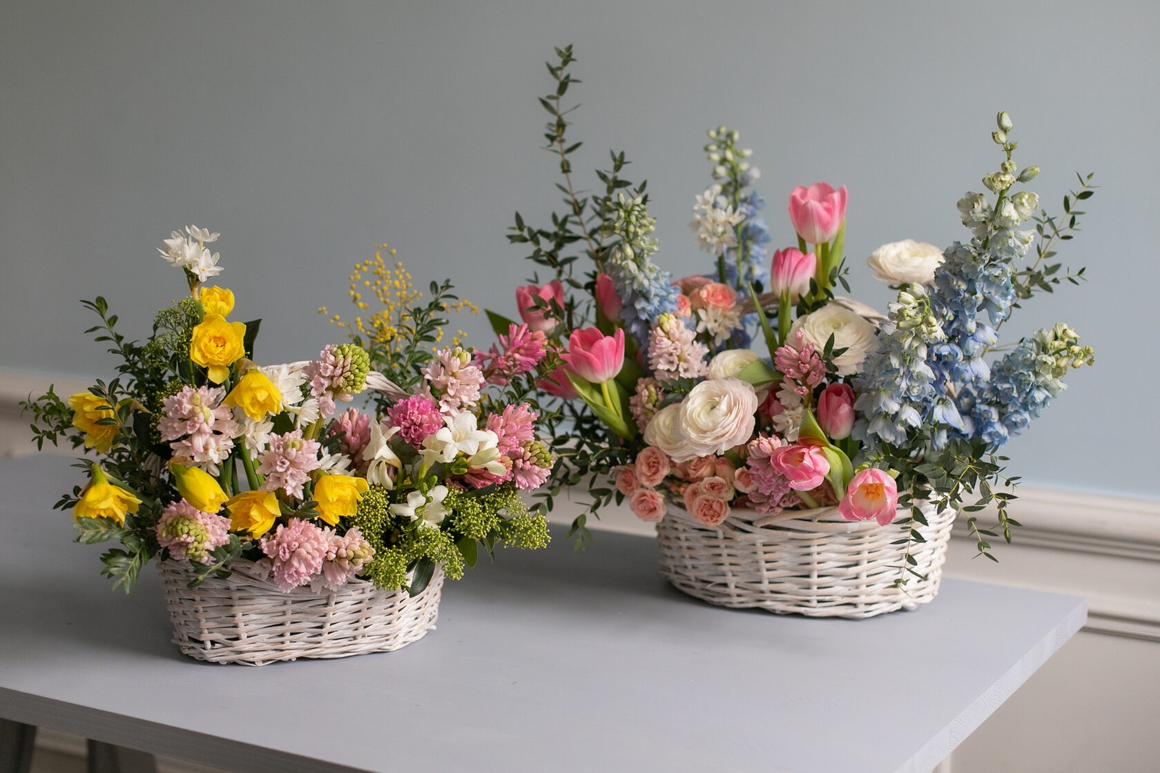 Следующий шаг — подбор наполнения. Цветы в корзине могут отличаться по типу и сочетанию, что влияет на общий вид и восприятие: