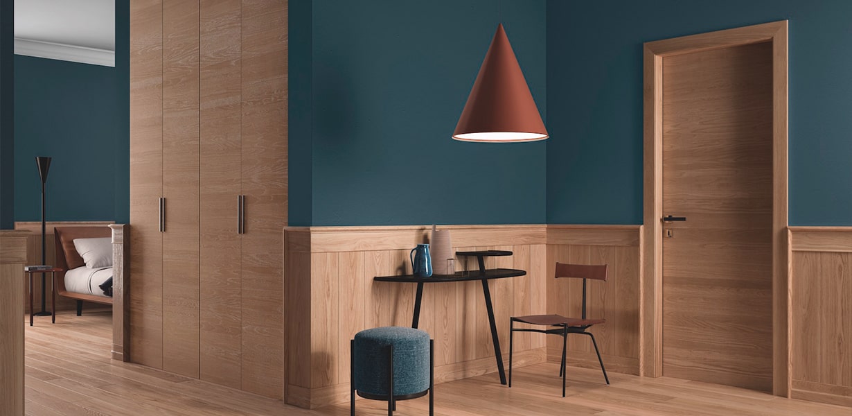 Благодаря натуральному срезу древесины, шпон точно передаёт текстуру и цвет настоящего дерева. Такие двери гармонично смотрятся как в классических интерьерах, так и в современных стилях, включая минимализм, сканди и Japandi.