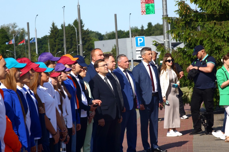 В митинге приняли участие юные пассажиры «Поезда памяти», который в эти дни тоже находится в Бресте. После завершения торжественной части они стали первыми посетителями поезда-музея.