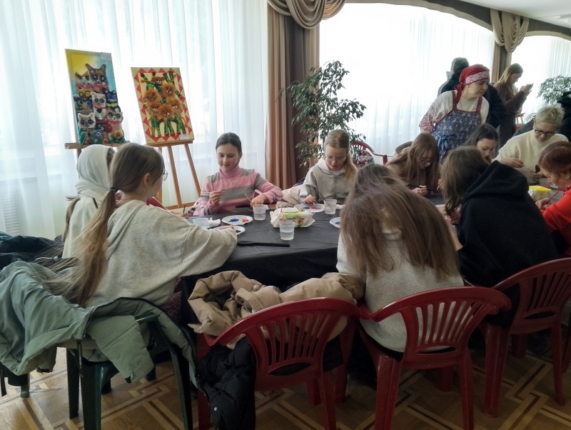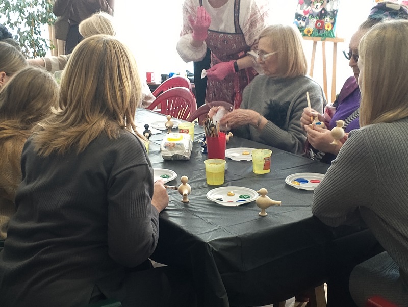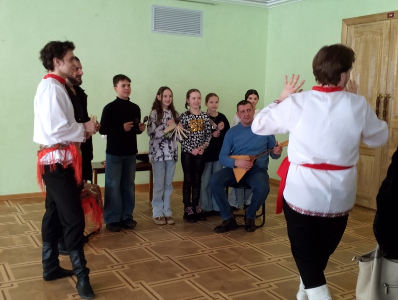 Внутри же Дворца культуры расположились столы с красками, кистями, деревянными заготовками. Все это – материалы и инструменты для создания извечных символов Масленицы. Например свистков в форме небольших птиц. А громкий свист от уже законченных поделок дополнял другие народные инструменты: балалайку, ложки, трещотки. И да, всем мелодиям гостей учили там же. Мастер-классы были доступны для абсолютно всех желающих.