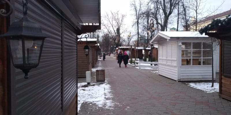 1 декабря на Гоголя откроется ярмарка, где можно будет купить гирлянды, ёлочные игрушки и всевозможные подарки под ёлочку. Пока большинство домиков закрыты роллетами, но можно наблюдать, как владельцы киосков украшают их к большой праздничной торговле.