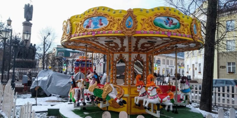 Улица Гоголя, ставшая в последние годы главной ярмарочной площадкой Бреста, подготовилась принимать посетителей. Здесь появилась детская карусель, выделен дворик для «кафе» под открытым небом, вдоль улицы расположились деревянные домики.
