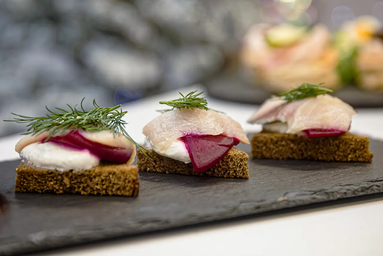 – Из сельди на новогодний стол можно приготовить не только классический салат – сельдь под шубой, но и праздничные, легкие и при этом вкусные брускетты. Для основы нашего блюда рекомендую брать «Матиас». Это качественная жирная норвежская сельдь, о чем свидетельствует знак SFN (Seafood from Norway) на упаковке, – рассказывает Илья.