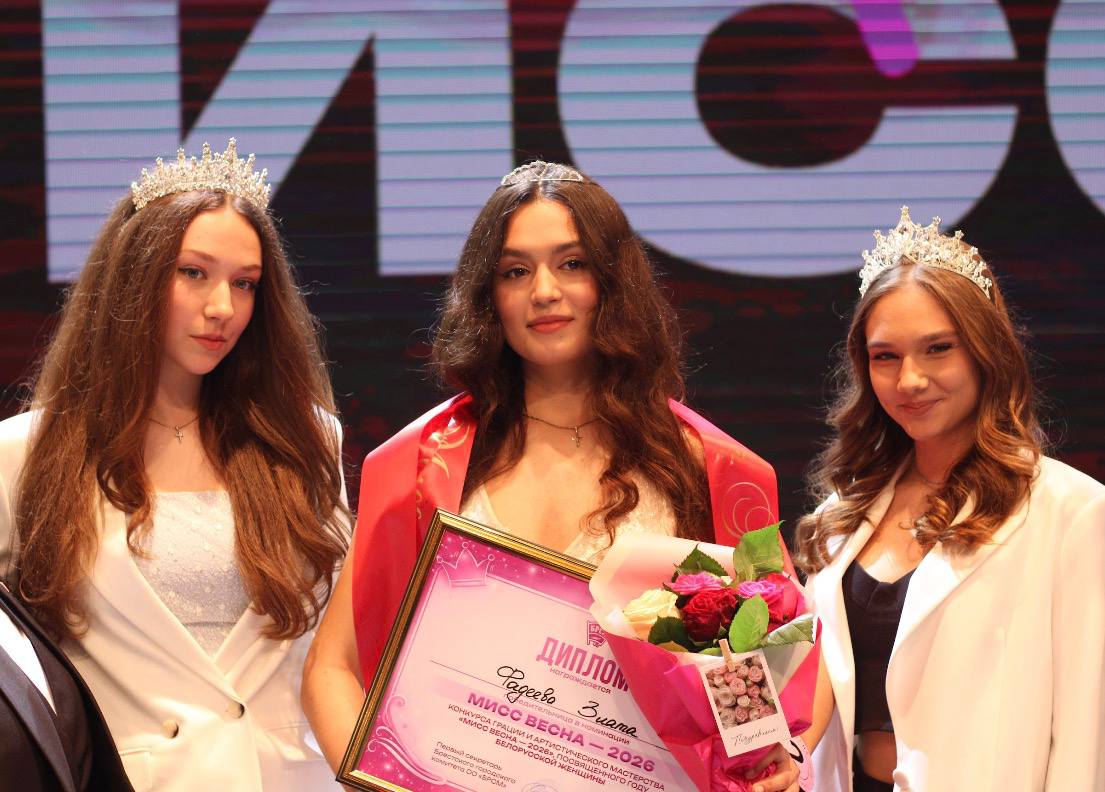 Титул «Мисс Весна» завоевала Злата Фадеева, ученица ГУО «Средняя школа № 1 г. Бреста». Она покорила судейскую коллегию и зрителей не только эффектным появлением на сцене, но и глубокими, искренними ответами в ораторском конкурсе, а также ярким творческим выступлением. Ее победа — это результат серьезной подготовки и несомненного природного обаяния.