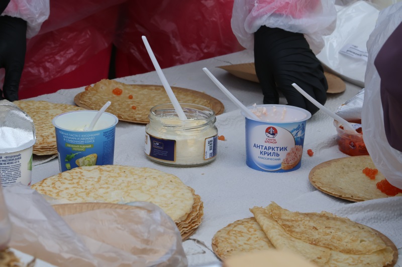 Задолго до полудня у импровизированной сцены собрались десятки горожан — аромат свежей сдобы и веселая музыка никого не оставили равнодушным. Гостей ждал настоящий пир: горячие блинчики с икрой, сыром, рыбными и сладкими начинками от BREMOR и «Савушкина», а к ним — чай, ягодный морс, квас и лимонады. И все это совершенно бесплатно!