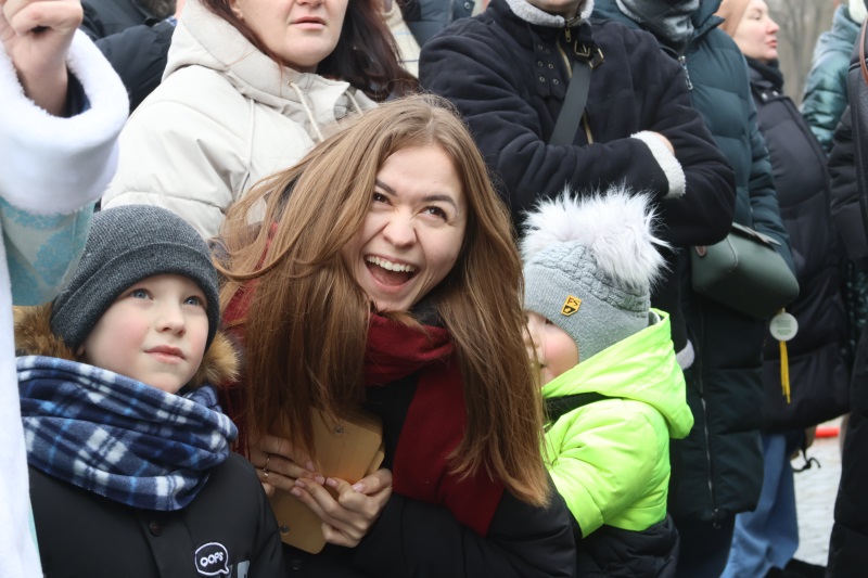 Восьмилетняя Софья пришла на праздник с братом и песиком Фунтиком и призналась, что блины со сгущенкой — именно то, что нужно для хорошего настроения: «Блин был сладким, прям как я люблю, а брат выбрал с сыром! В прошлый раз на Новый год здесь тоже было весело, а сейчас даже еще лучше!»