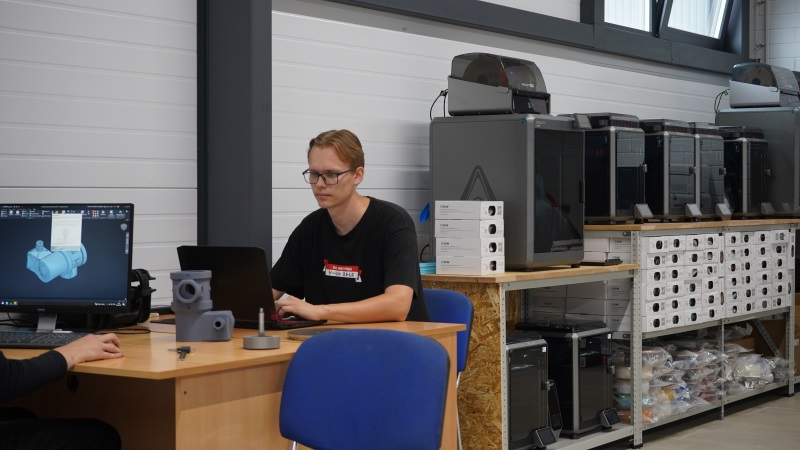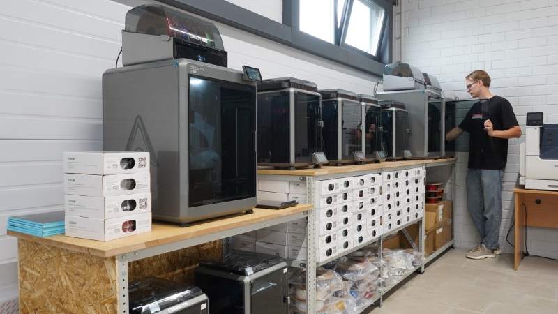 Тут надо немного отскочить в прошлое и вспомнить, как вообще фирма, работающая с кровлей, вдруг стала развивать направление 3D-печати. А появилось оно тут сугубо по хозяйским соображениям – «для себя». Виктор Козлов отмечает, что у компании имелась потребность в пластиковых изделиях для основного производства. Но подрядчиков, которые готовы были делать небольшие партии под индивидуальные заказы, не нашлось. Специалисты, работавшие с «любительскими» 3D-принтерами, не могли гарантировать надлежащего качества. И тогда в «ДахМаркете» взяли все в свои руки, закупив целый парк современных принтеров «Creality» – в версиях К2plus и K1C. Эти устройства позволяют работать практически со всеми видами пластика, включая инженерные и композитные, имеют высокую скорость печати, новейшие процессоры и «софт».
