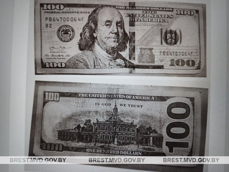 Так, в Пинский ГОВД поступило сообщение о том, что 16-летняя местная жительница в одном из банков города предъявила к обмену купюру достоинством 100 долларов США. Специалист банка заметила признаки подделки и незамедлительно вызвала наряд милиции, нажав на тревожную кнопку. На место выбыли правоохранители.