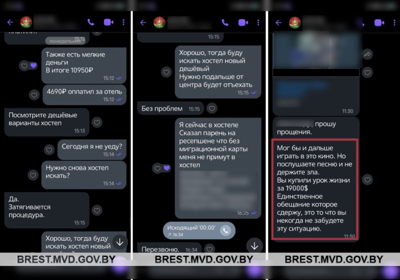 Оказавшись в соседней стране, парень узнал, что «декларирование» переносится в ее столицу, куда он послушно и последовал. Там с помощью инфо-киоска он перевел наличные на указанную «правоохранителем» банковскую карту. Лишь тогда, выполнив все указания, он получил сообщение с признанием мошенников о том, что в действительности действовал под их руководством и передал все свои сбережения на общую сумму более 53 тысяч рублей в эквиваленте не правоохранителям, а преступникам.