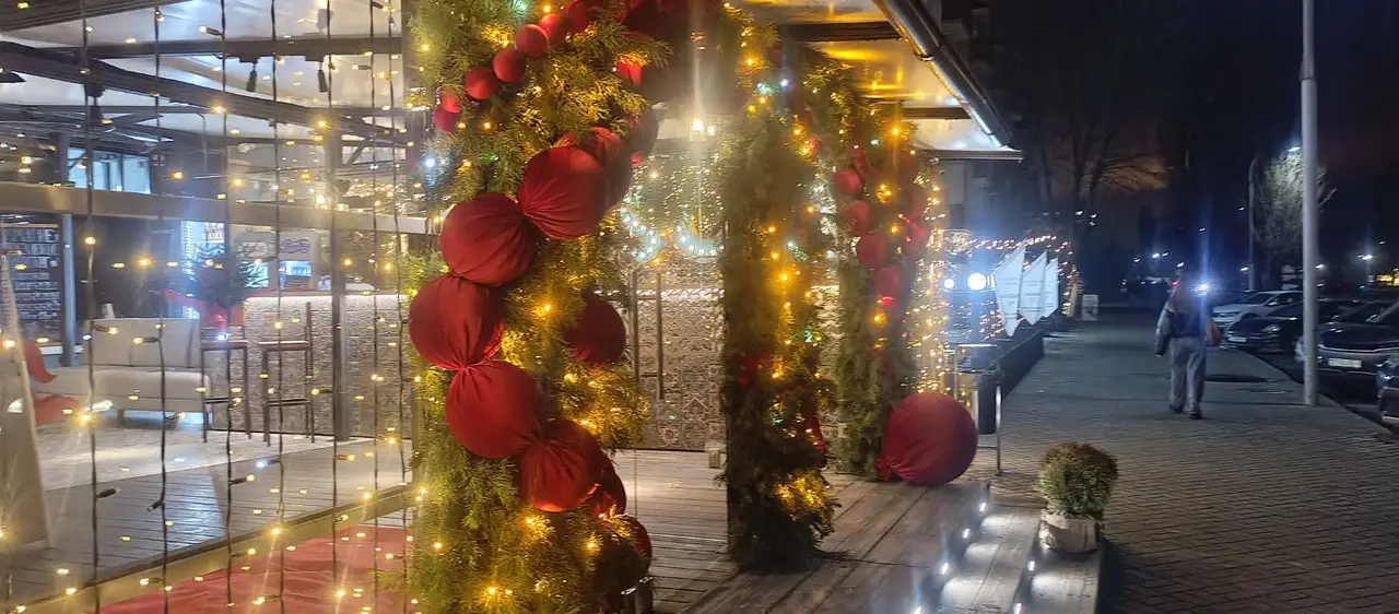 Праздник больше не толпится на пешеходной улице – в нынешнем году он активно разошелся по городу. Кафе итальянских десертов «Таормина» на углу Гоголя на фасаде разместило цветных лошадок, будто снятых с карусели рубежа XIX и XX веков. Эти образы десятилетиями ассоциируются с детством и счастливой семьей. А коняшка-качалка на террасе ресторана «Blosson» («Цветение») – это комплимент герою грядущего года, Красной Огненной Лошади.