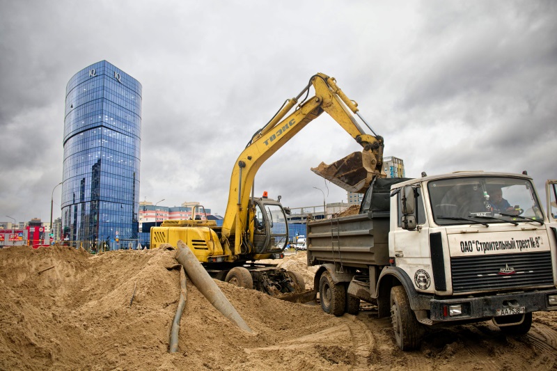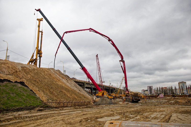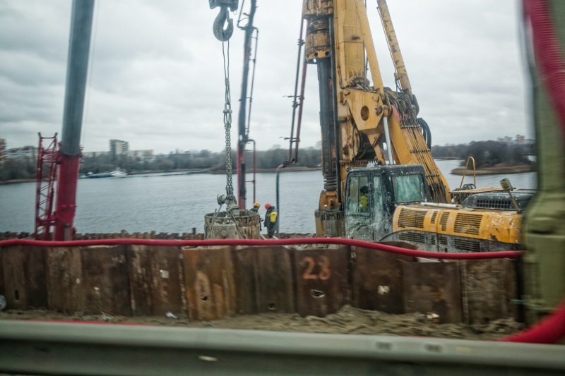 На сегодняшний день выполнено более 80% работ подготовительного этапа. И для сокращения сроков строительства объекта в целом было принято решение параллельно начать устройство новой ветки. С сентября мы активно начали делать насыпь мостового сооружения, подготовили рабочую площадку, на которой в последующем расположилась строительная техника. И сегодня вы можете видеть, что специалисты «Мостотряда» приступили к устройству монолитных колонн, на которые впоследствии будут опираться пролетные сооружения. Однако для того, чтобы закончить весь комплекс работ второго этапа, возникла необходимость перенаправить движение транспорта со стороны Варшавской шоссе по объездной дороге. Данные мероприятия были предусмотрены проектом, но на более поздний этап.