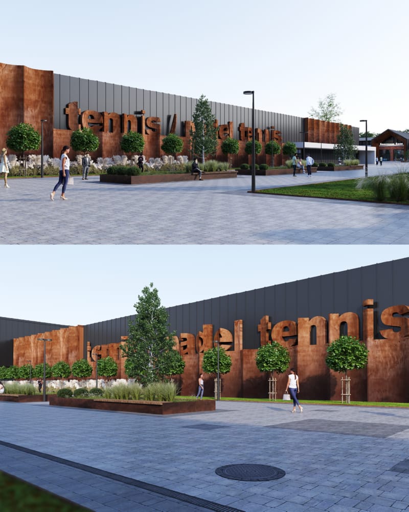1 – Спортивный манеж 1-3 этажа. Теннисные корты, падел-корты, тренажерный зал, залы аэробики, спортивный магазин. Общая площадь 9380 м кв. Вместимость 170 чел./час. Основное назначение — это теннисные корты с профессиональным покрытием и падел-корты для занятий новичков и профессионалов, с устройством трибун и проведением соревнований. Тренажерный зал площадью 1000 м кв. и 3 зала аэробики. Современные и вместительные раздевалки и санузлы.