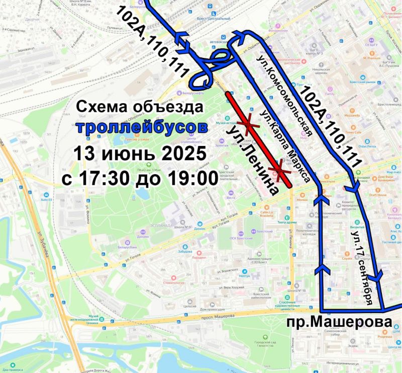 Обратите внимание, что общественный транспорт будет следовать в объезд согласно прилагаемым схемам.