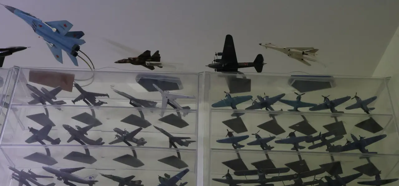 – Часть моделей выполнена в металле, часть – в дереве и пластике. С каждым представленным самолетом связана история. Например, на АНТ—25 Чкалов выполнил рекордный перелет Москва-Ванкувер. Во время Великой Отечественной войны немцы окрестили Ил-2 «черной смертью». На МиГ-15 летал Юрий Гагарин. МиГ-25 – советский сверхзвуковой перехватчик, Ил—38 предназначался для поиска и уничтожения подводных лодок противника. А этот «толстячок» А-380 легко вмещает более 400 пассажиров. Популярный Boeing 747 тоже есть в моей коллекции. Даже есть маленькая копия самолета, на котором летал Владимир Путин, – ТУ-214 ПУ. Всего почти две сотни воздушных миниатюрных судов, – с гордостью рассказывает Михаил Шаврин.
