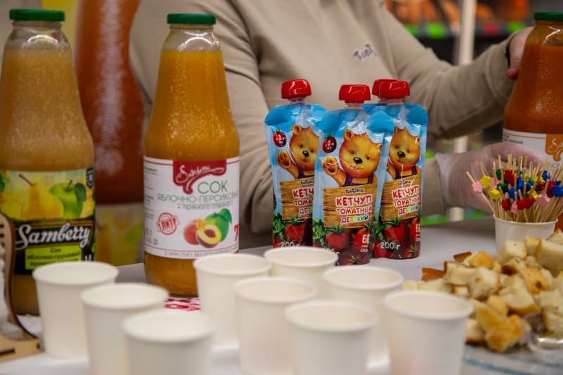 Пока малыши дегустировали фруктовые пюре, взрослые с интересом знакомились с продукцией для семейного стола под брендами «Samberry» и «Соуситто».