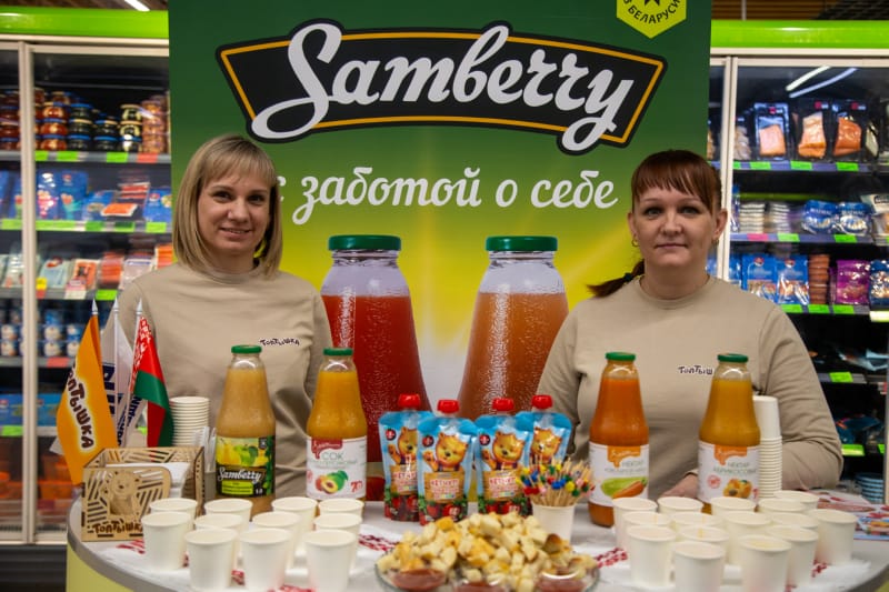 На пути к прилавкам покупателей встречали яркие стенды с продукцией под двумя известными брендами: нежным детским питанием «Топтышка» и линейкой натуральных соков, соусов и джемов «Samberry». В формате живого общения представители Малоритского консервноовощесушильного комбината завоевывали сердца покупателей, предоставляя возможность гостям не только попробовать новинки, но и лично задать вопросы технологам.