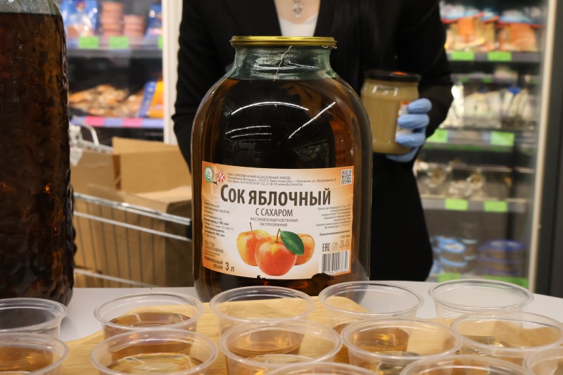 Живой интерес у покупателей вызывала продукция Ляховичского консервного завода. Во время дегустации у производителя можно было попробовать сразу несколько видов выпускаемой продукции – сок яблочный с сахаром, компот ассорти из клубники и черники, пюре яблочное с молоком и сахаром, а также соус-пасту песто.