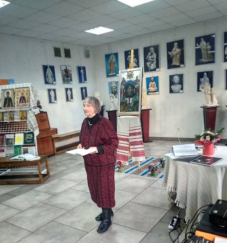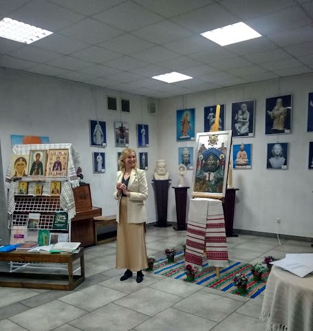 Икона выполнена в древнерусском стиле, на доске. Татьяна Жук заканчивала работу в Млынах, там же завершенность образу придал крест-энколпион, закрепленный в центре иконы. Уже после презентации все участники проекта выразили огромную благодарность хозяйке дома Людмиле Трофимовне, которая создала все условия для работы.