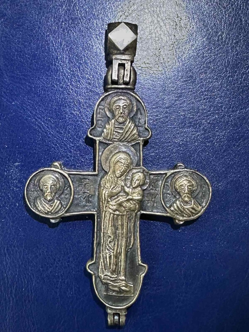 Уникальность этой иконы еще и в том, что икона-крест представляет собой энколпион, т.е. двустворчатый крест с полостью внутри, где в старину богомольцы хранили реликвии, например, мощи святых.