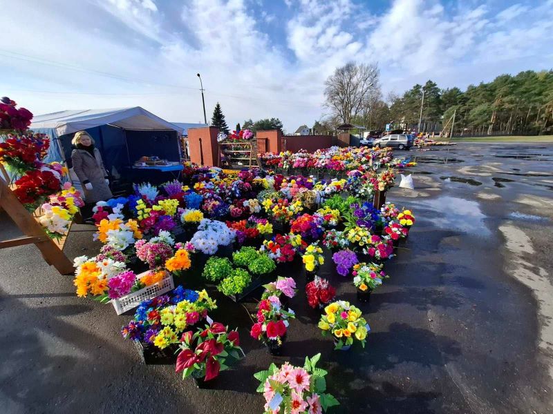 Начиная с середины марта, в период массового посещения кладбищ «Северное» и «Плоска», спецпредприятие предлагает широкий спектр услуг для граждан: обустраивает торговые точки с реализацией всего необходимого — лампадок, искусственных цветов, венков, лент, щебня и др. Их можно купить прямо у входа на кладбище, а с 18 по 21 апреля выездная торговля будет проходить на всех местах погребения, находящихся в хозяйственном ведении спецпредприятия, а также на кладбищах в деревнях Косичи и Каменица-Жировецкая.
