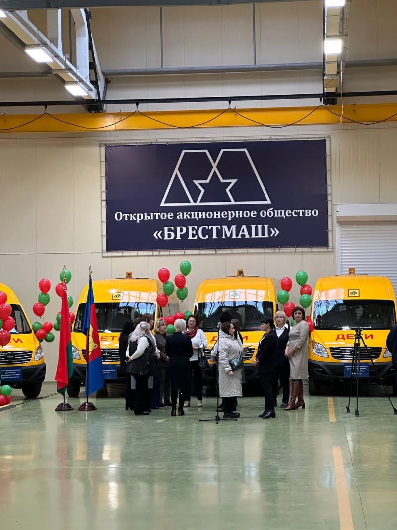 На ОАО «Брестмаш» с участием главы города Сергея Лободинского и министра образования Андрея Иванца состоялась торжественная церемония передачи специально оборудованного транспорта учреждениям образования Брестской области.