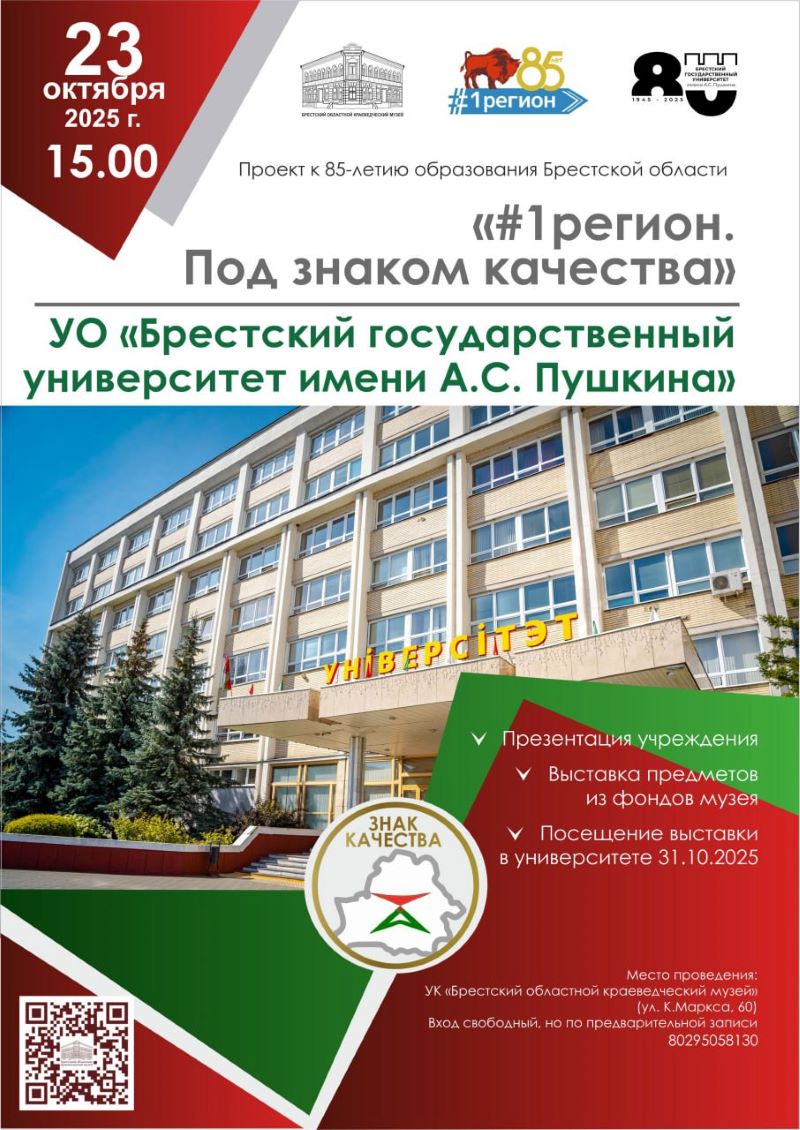 В отличие от предыдущих мероприятий, которые знакомили посетителей с экономическим потенциалом – промышленными предприятиями Брестчины, в этот раз будет представлен флагман образовательных услуг – Брестский государственный университет имени А.С. Пушкина, который в этом году отмечает свой 80-летний юбилей.