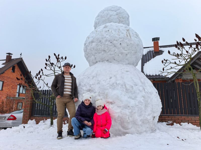 Местный житель Леонид вместе со своими дочками Миланой и Леаной построил гигантского снеговика высотой почти 4 метра!