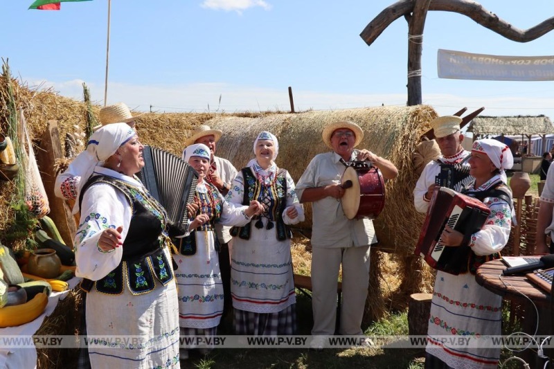 Программа праздника продолжилась выступлением на праздничной сцене творческих коллективов наших соседей – Men,s Quatro (Иваново), «Выцiнанка» и «Теребежовские хорошухи» (Столин), а также Пинского района и г. Пинска.