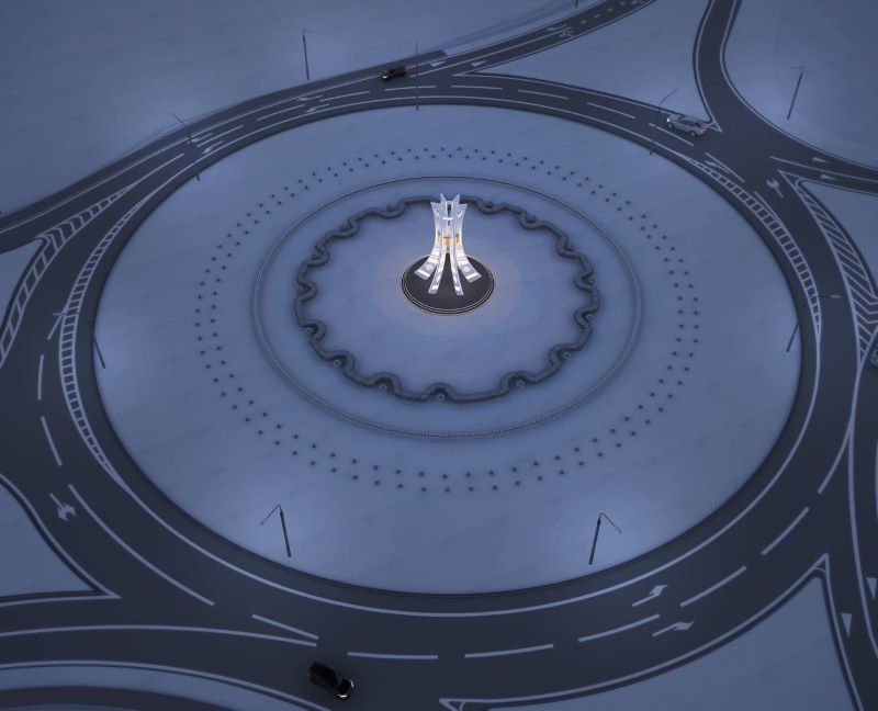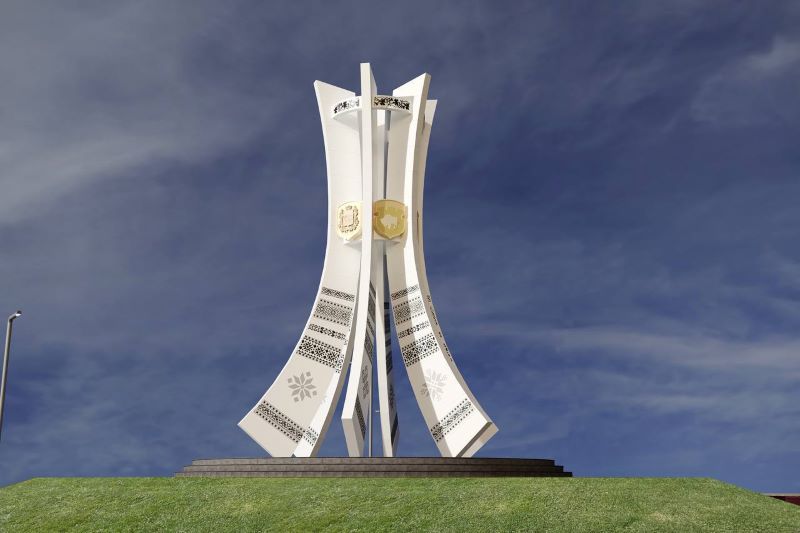 Проектом предусмотрена декоративная подсветка стелы. Внутренняя подсветка перфорации позволит в вечернее и ночное время особенно выделить узор светом.