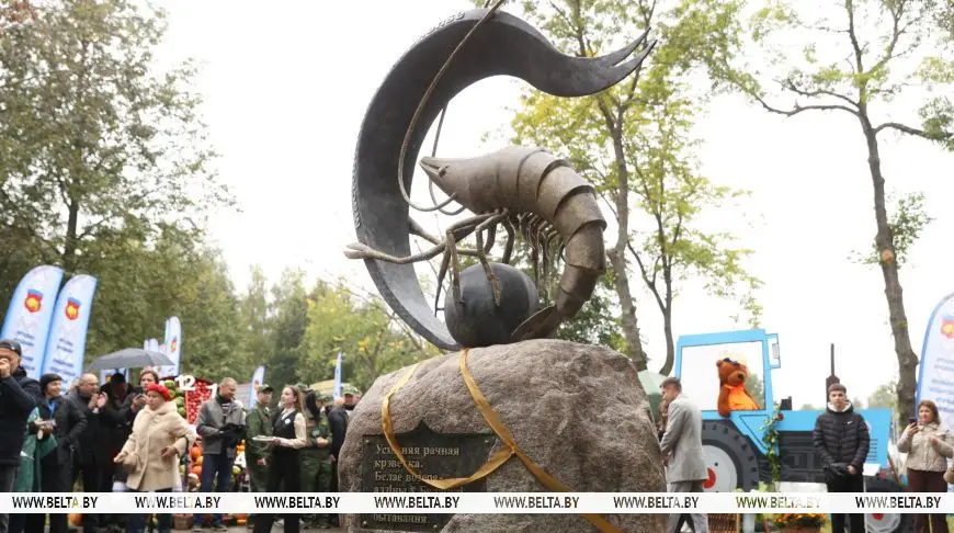 Белоозерск 4 октября принимает фестиваль-ярмарку тружеников села Брестской области «Дажынкі-2025». Для жителей и гостей праздника приготовили множество сюрпризов. Один из них — открытие памятного знака белорусской пресноводной креветке. В церемонии приняли участие заместитель премьер-министра Юрий Шулейко и председатель Брестского облисполкома Петр Пархомчик, передает БЕЛТА.