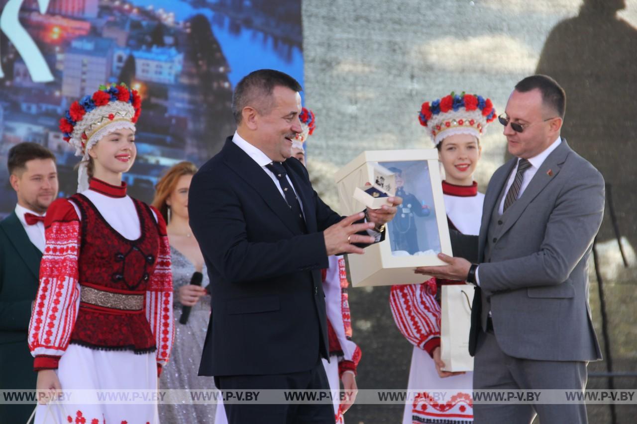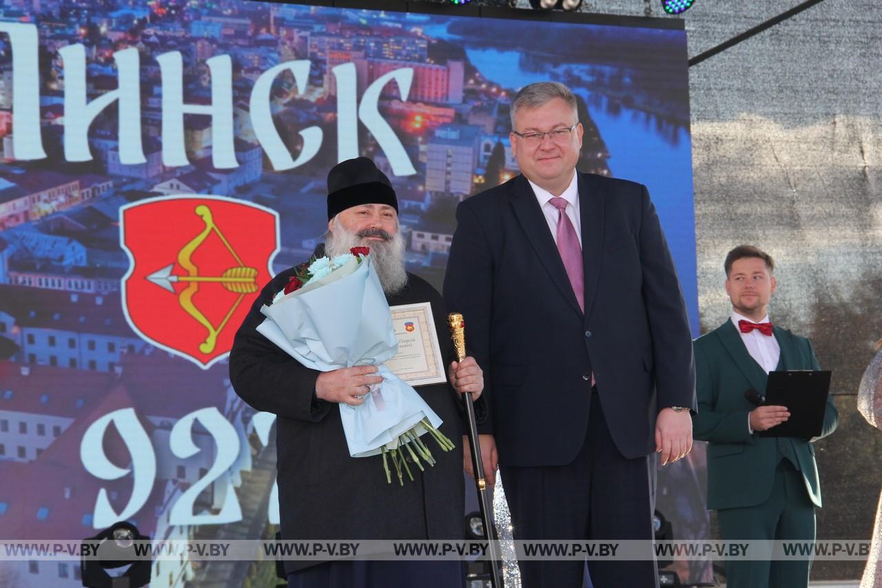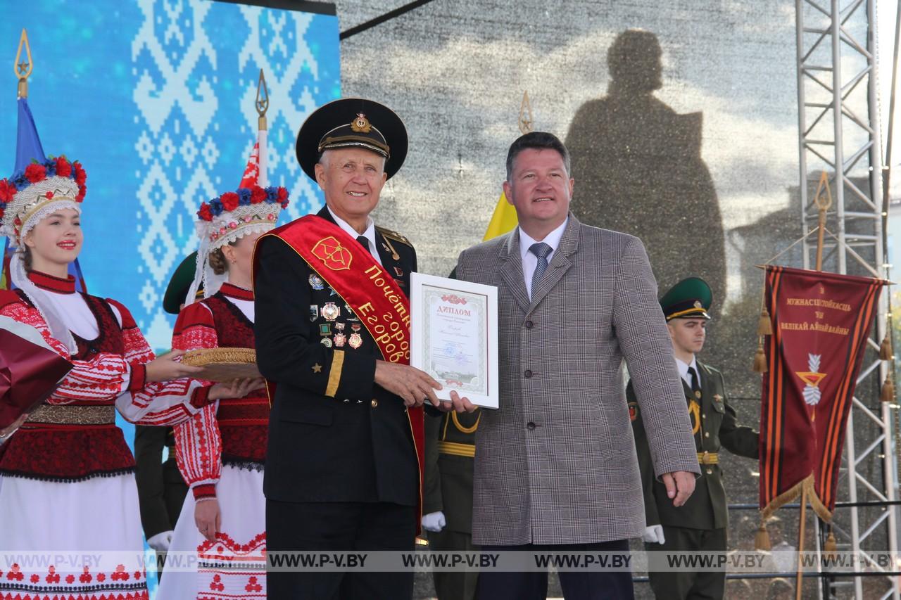 Интригой для многих оставалось, кому в этот раз вручат диплом и отличительные знаки Почетного гражданина города Пинска. В последние годы стало традицией выполнять эту торжественную процедуру именно на главной сцене праздника.