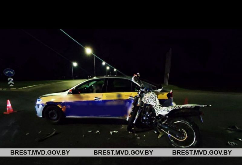 3 апреля около 23:42 часов 21-летний водитель управлял автомобилем такси «Volkswagen» и двигался по автодороге М1-Е30 «Брест-Минск гр.РФ» в направлении от аг.Черни к д.Клейники. На 10-м километре указанной дороги, при выезде на перекресток с автодорогой Р-83 «Брест-Каменец-НП «Беловежская пуща» (перекресток с круговым движением), не уступил дорогу и совершил столкновение с мотоциклом «Racer» под управлением 32-летнего водителя, который двигался слева направо по ходу движения автомобиля.