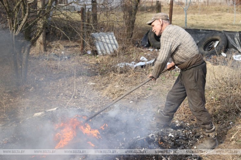 Сейчас в деревнях Брестской области наведение порядка на земле — привычная картина. Люди сжигают порубочные остатки, ветки, прошлогоднюю листву. Супруги Вера и Янош Ситар из Чернавчиц тоже убирают свой двор после зимы. «Выношу ветки на огород и сжигаю, но не на траве, а там, где кругом песочек. Возле огня нахожусь до самого конца. Лопата тоже у меня под рукой. Листья сгребаю и складываю вдоль забора, потом они перегниют и будет хорошее удобрение. Я живу на перекрестке, кругом ездят машины, и мне хочется, чтобы у меня был порядок: и деревья побелены, и мусора не было», — поделилась пенсионерка.