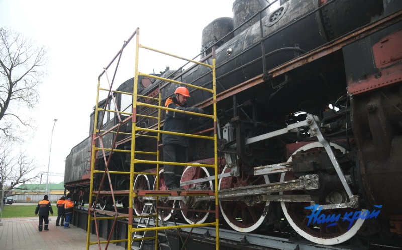 Начальник локомотивного депо Сергей Прокуда поделился с нами еще одной интересной информацией. После восстановления локомотива на его передней части будет установлена пятиконечная красная звезда, которую изготовят железнодорожники. И весь паровоз окрасится в выразительный черно-красный цвет. Кстати, после очистки машины на ней были обнаружены и желто-белые оригинальные полоски.