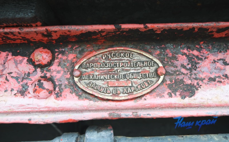 – Смотрите, прямо над топкой, с одной и другой стороны машины значится: «Русское паровозостроительное и механическое общество, завод в Харькове», – и Владимир Бурбицкий указывает нам на небольшой овальный элемент, который указывает на то место, где, по всей видимости, была изготовлена сама топка.