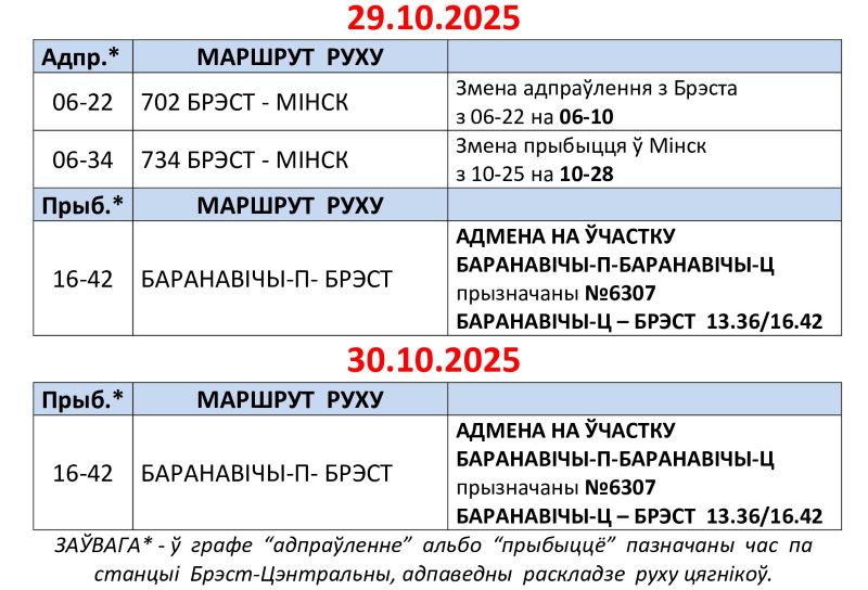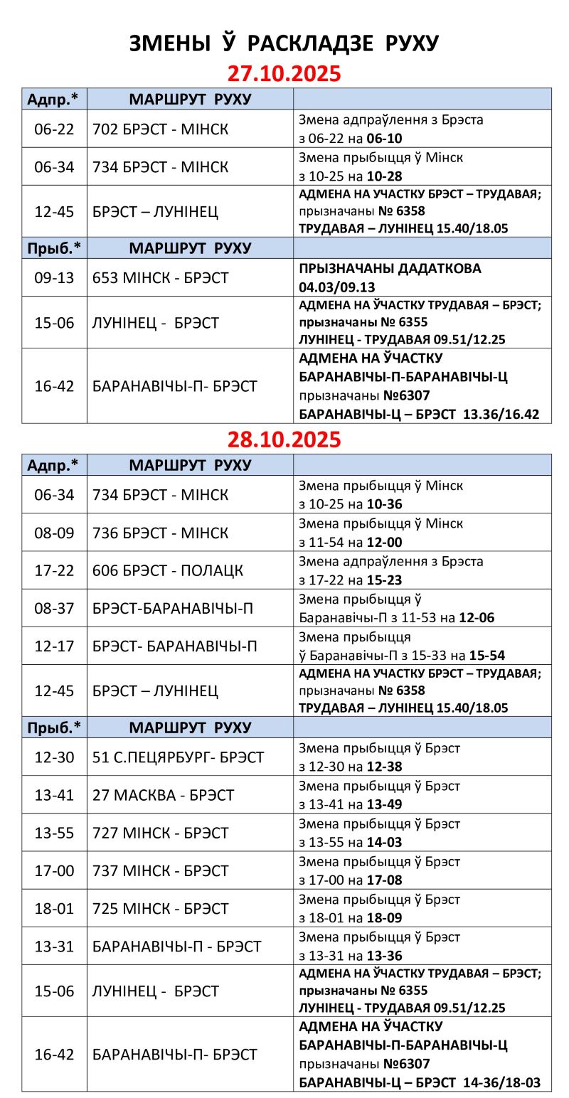 Корректировки в расписании ожидаются с понедельника, 27 октября.