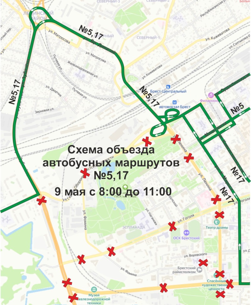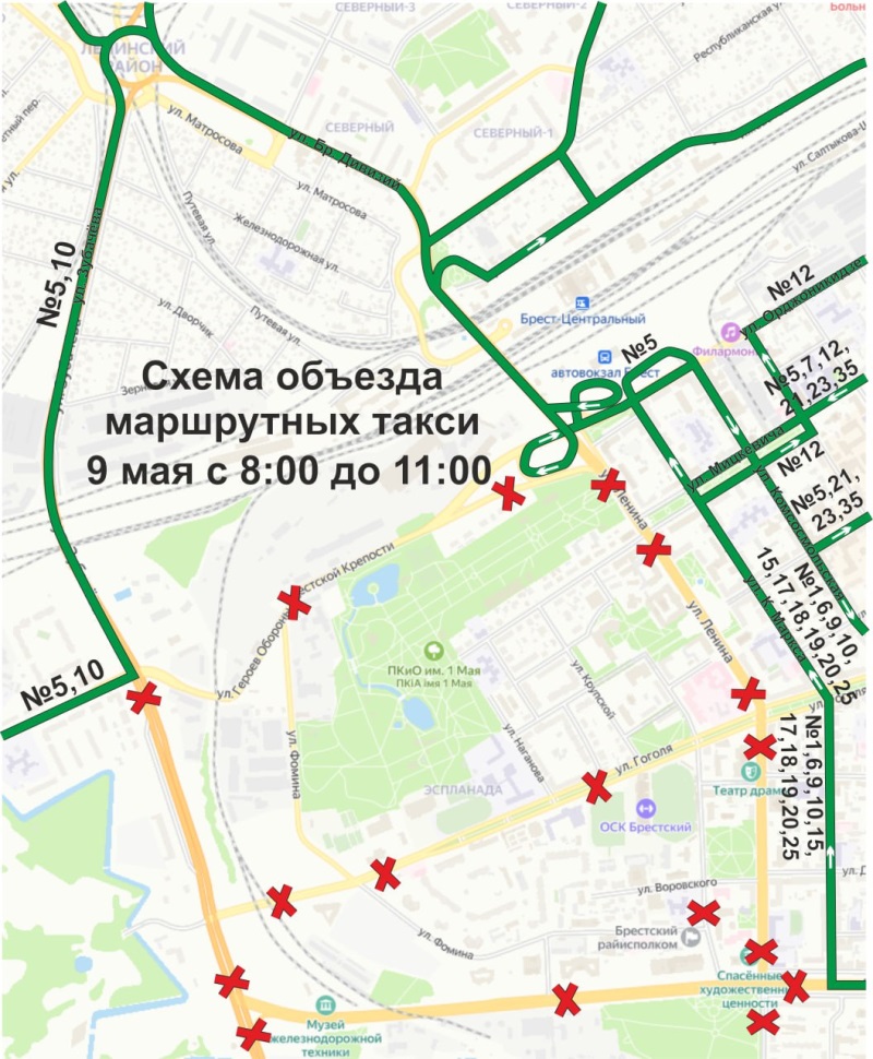 В связи с проведением массовых мероприятий в г. Бресте вводится временное запрещение движения транспортных средств и самоходных машин 9 мая 2025 года с 08 часов 00 минут до 11 часов 00 минут: